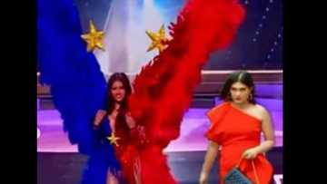 Catriona also got stunned by Rabiya Mateo’s performance as the latter presented her national costume for the Miss Universe 2020 competition on Friday, May 14. Rabiya’s costume inspired by the Philippine flag has wings weighing 21 kilos.