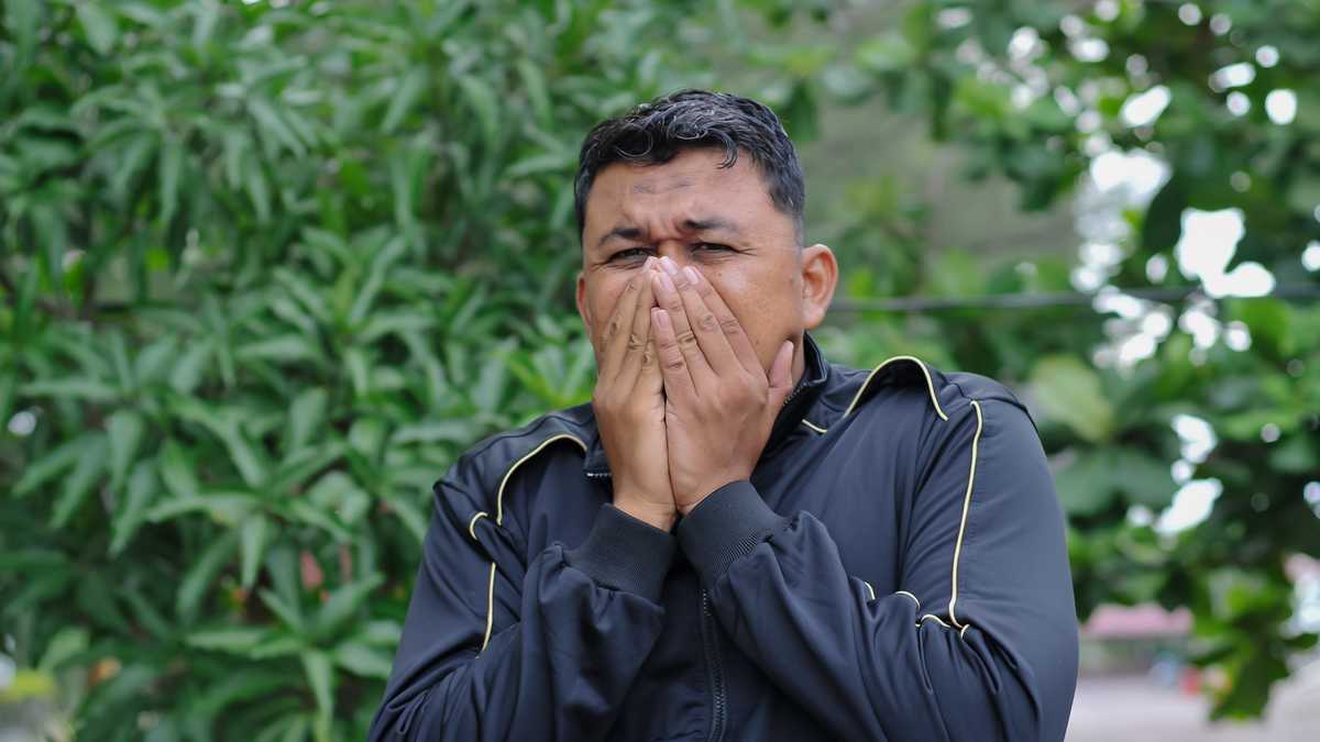 Not quietly teary or politely sad. His shoulders shook as if something inside him was breaking apart. He kept his head lowered, one hand pressed hard against his face, as if he was trying to keep the sound of his grief from escaping.