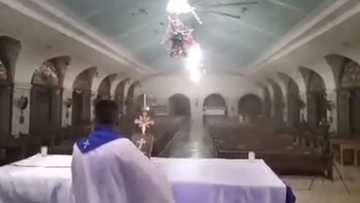 Video ng pari sa Bohol na patuloy na nagmimisa habang hinahampas na ni Odette ang probinsya, viral