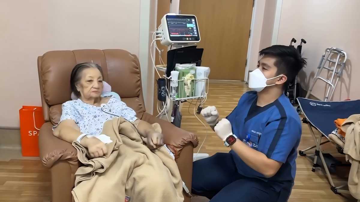 Sa kanyang video update, makikita ang kanyang ina na nakaupo sa isang recliner chair habang sinusunod ang mga movements ng isang healthcare professional para sa kaunting stretching.